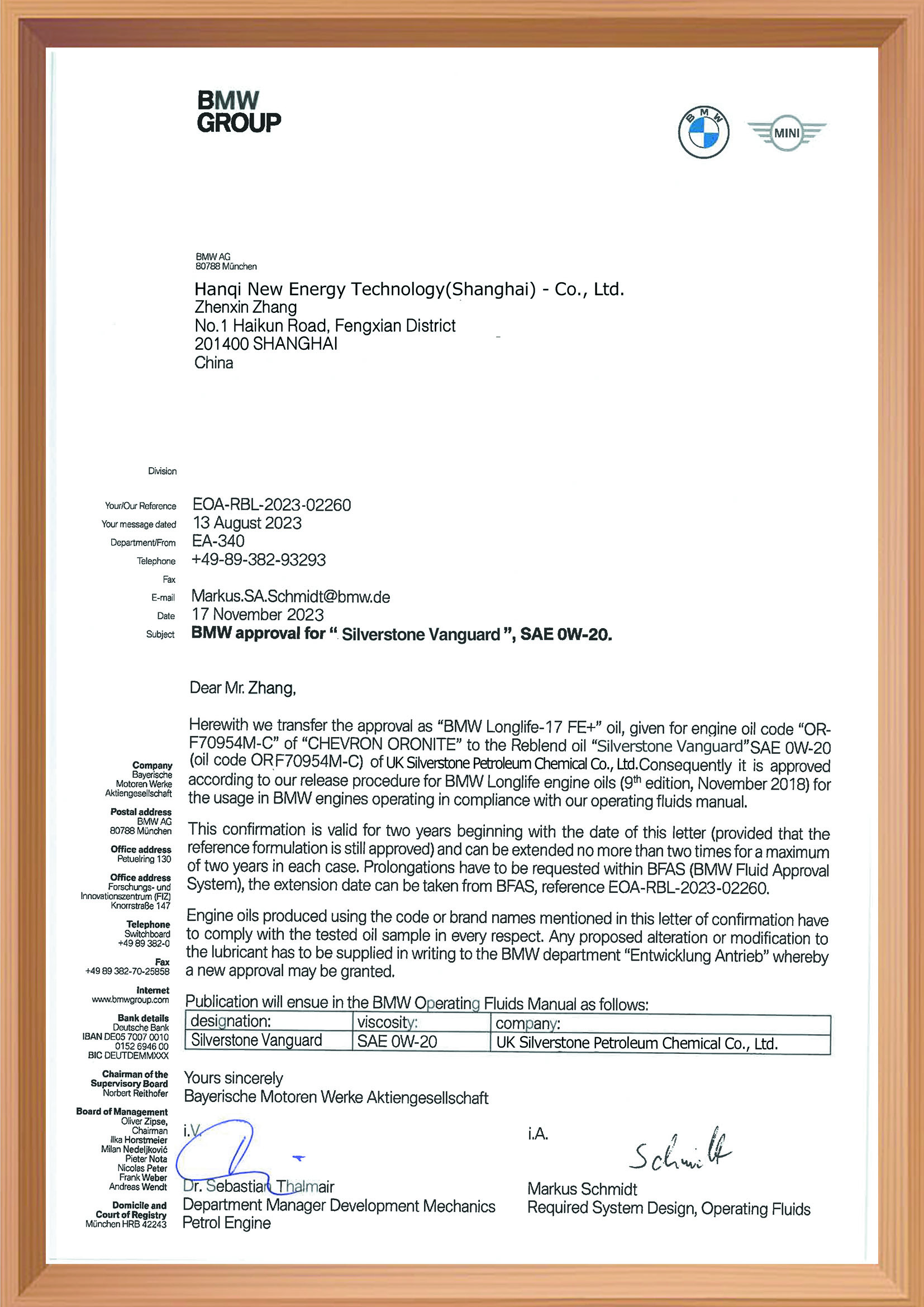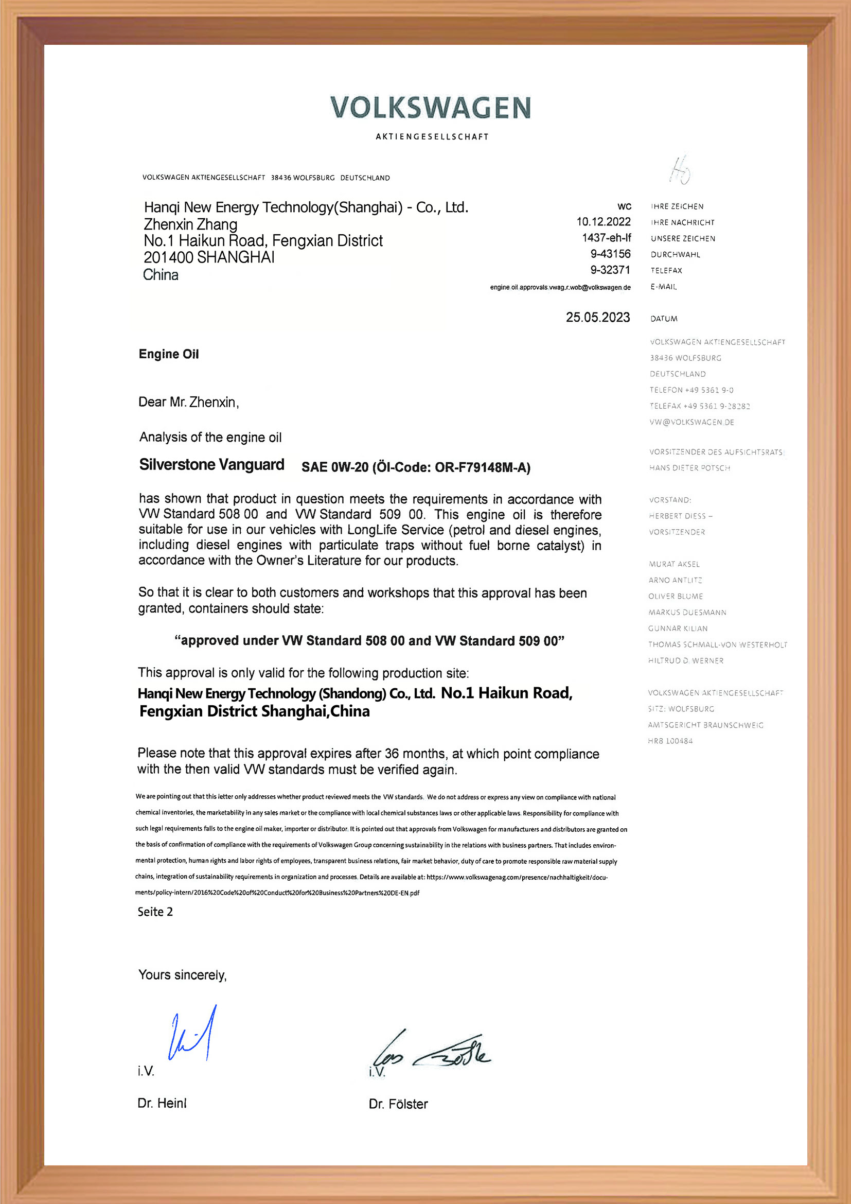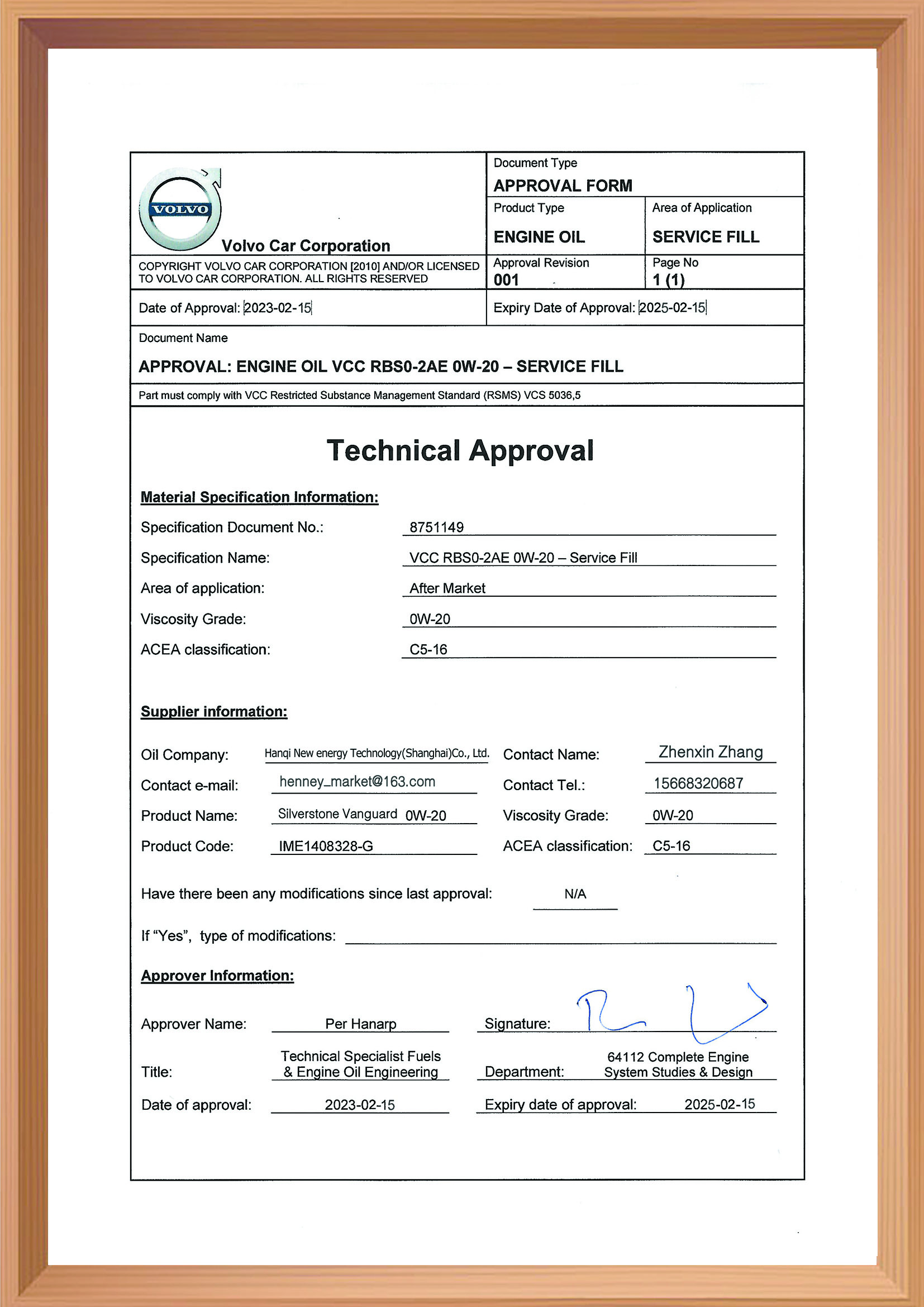 ACEA A5/B5 认证证书