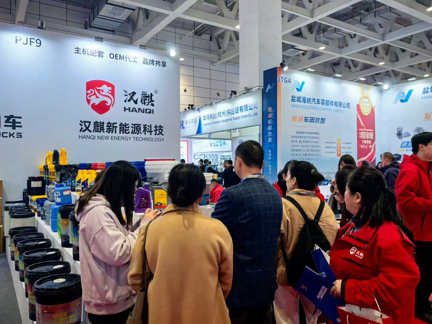 汉麒新能源科技在展会上重点展示自有品牌润滑油产品与原厂机油产品,凭借优质品质与稳定性能,吸引众多客户驻足咨询。现场客户对产品适用性、性价比高度认可,纷纷表达合作意向。